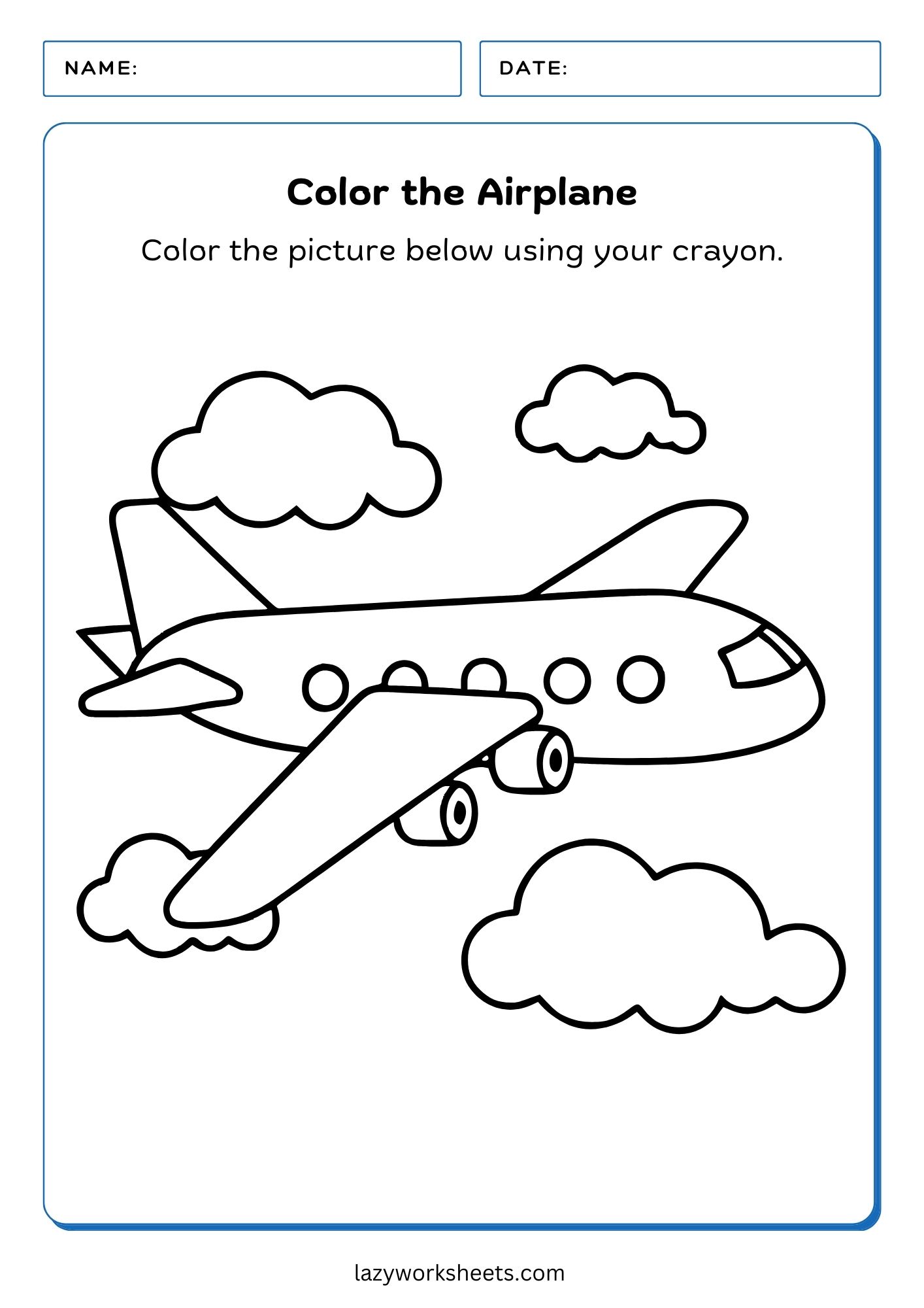 - Color the Airplane PDF Worksheet