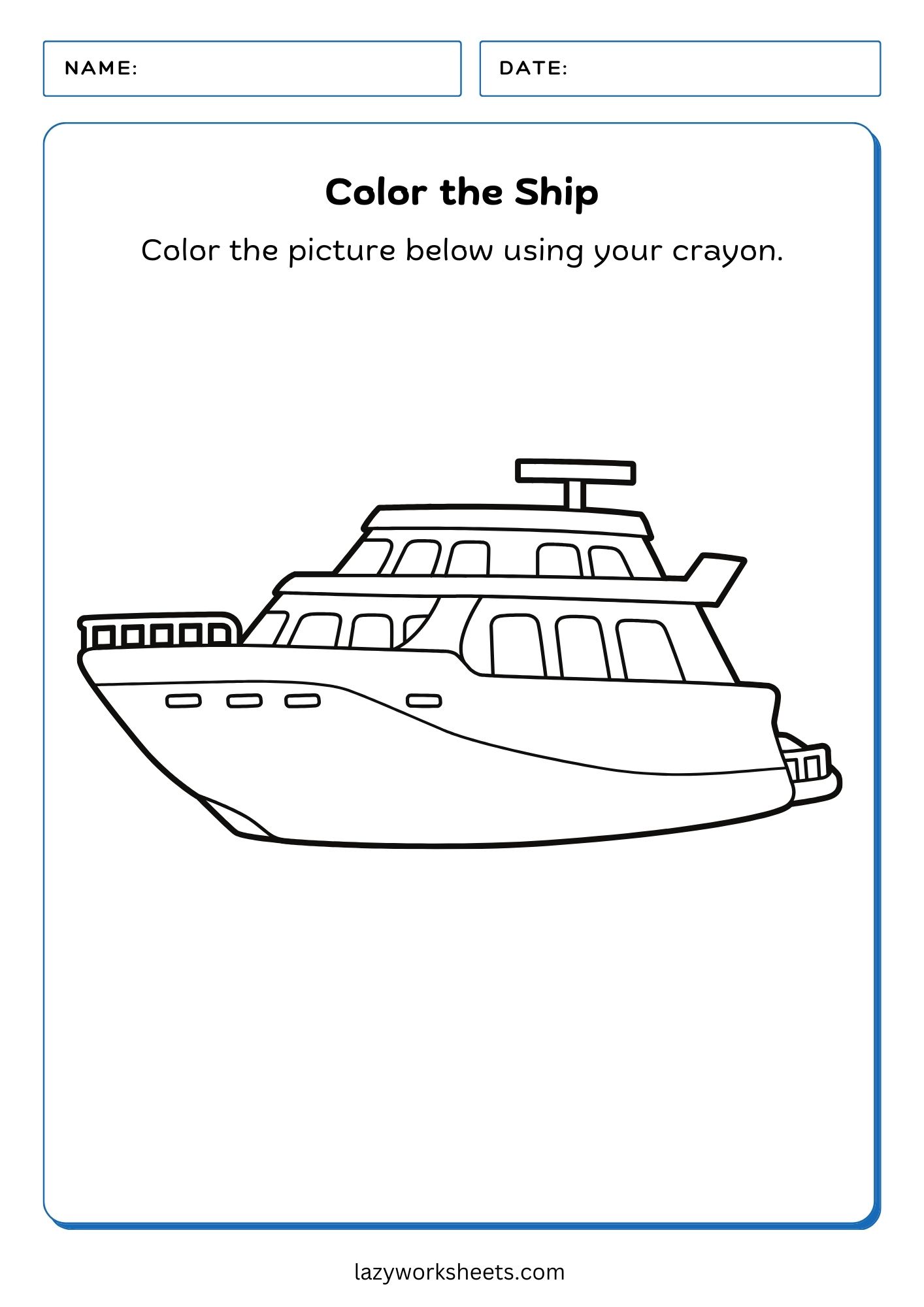 - Color the Ship PDF Worksheet