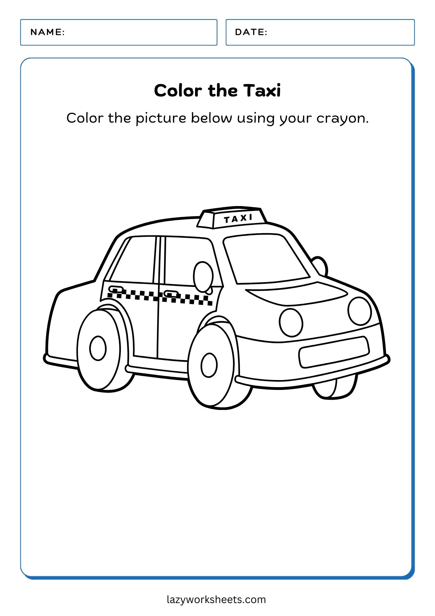 - Color the Taxi PDF Worksheet