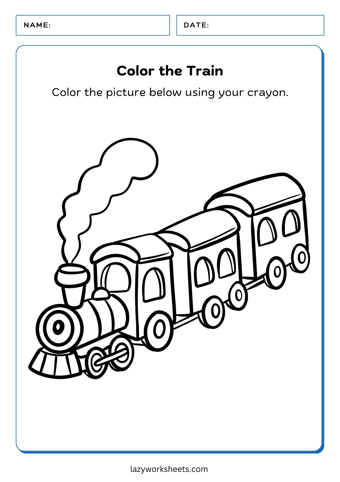 - Color the Train PDF Worksheet
