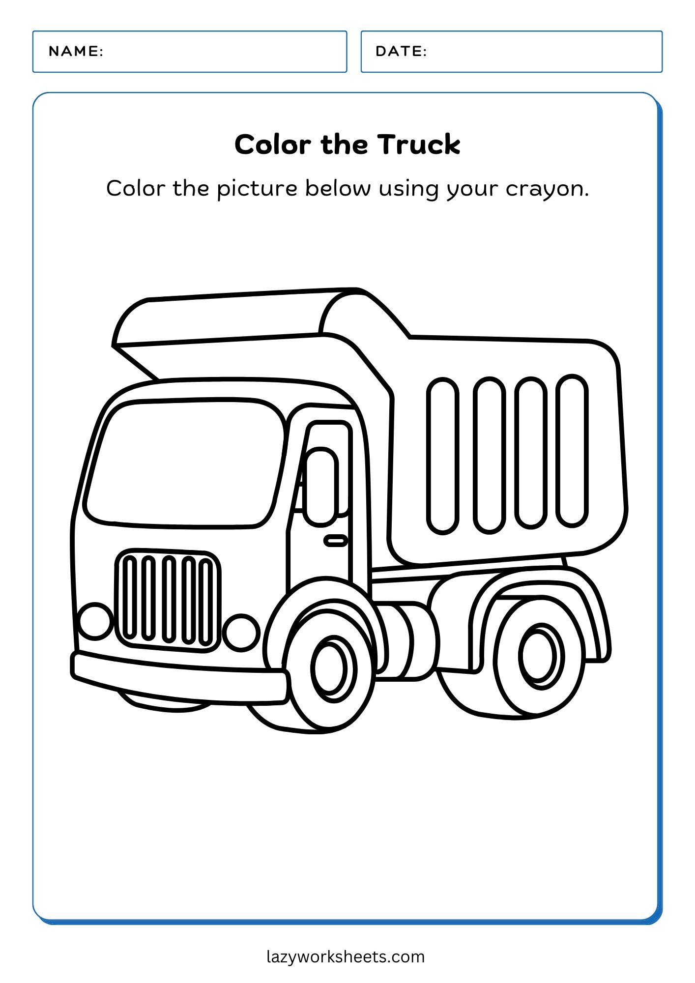 - Color the Truck PDF Worksheet