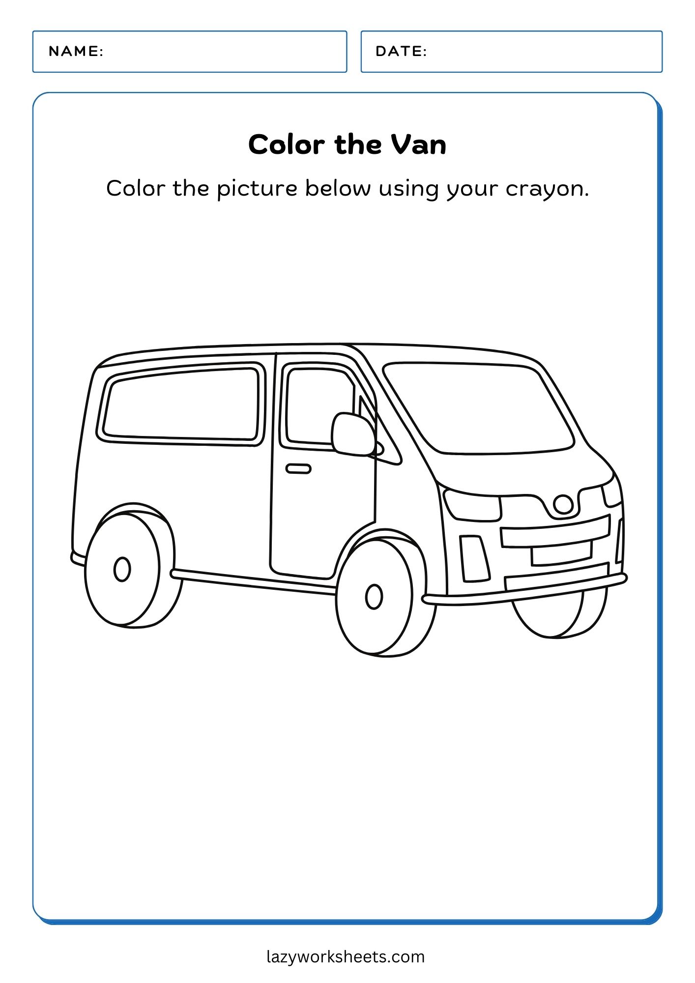 - Color the Van PDF Worksheet