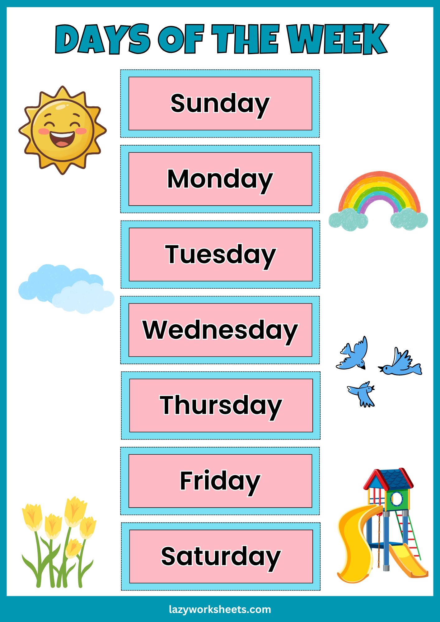 Download our Printable PDF Days of the Week Charts for free and help your little one develop their love for learning at an early age. Designed by experienced educators and homeschooling moms, our free worksheets and educational charts are effective in teaching children and students the fundamental knowledge and skills they need in order to be academically competitive.