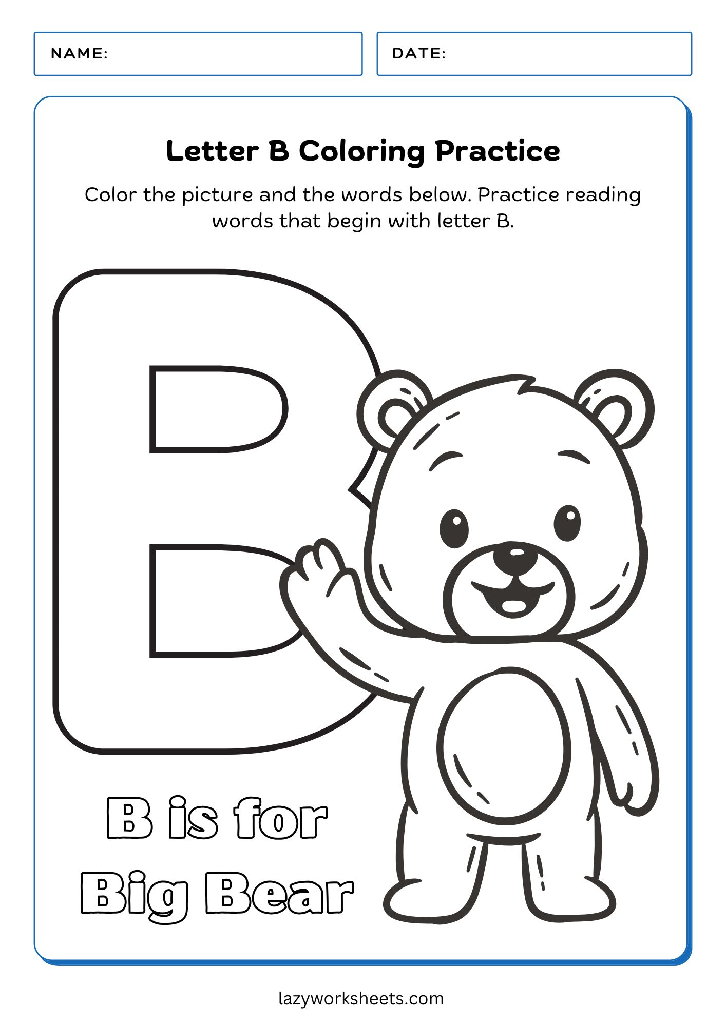 - Letter B Coloring Worksheet