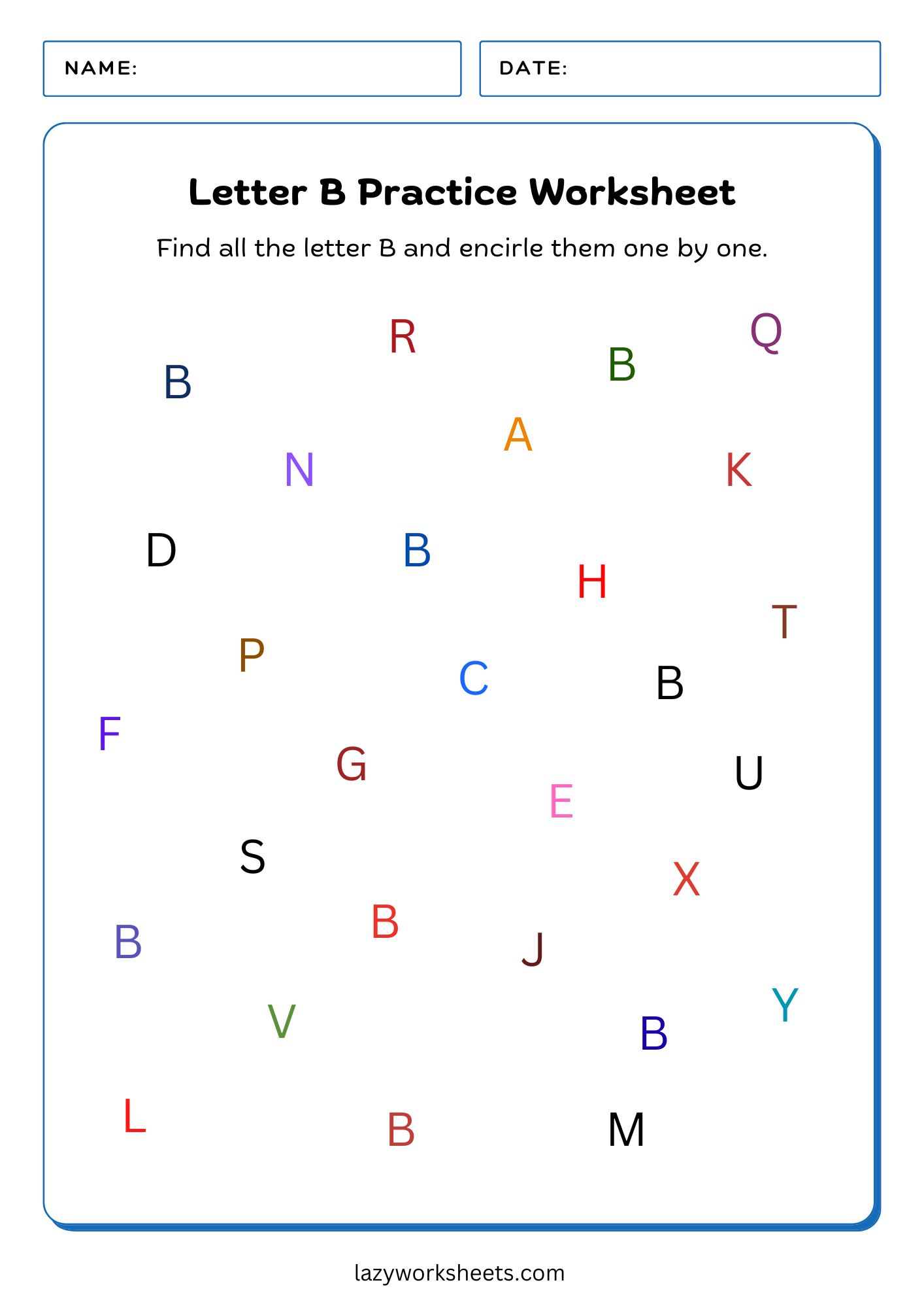 - Find the Letter B Practice PDF Worksheet