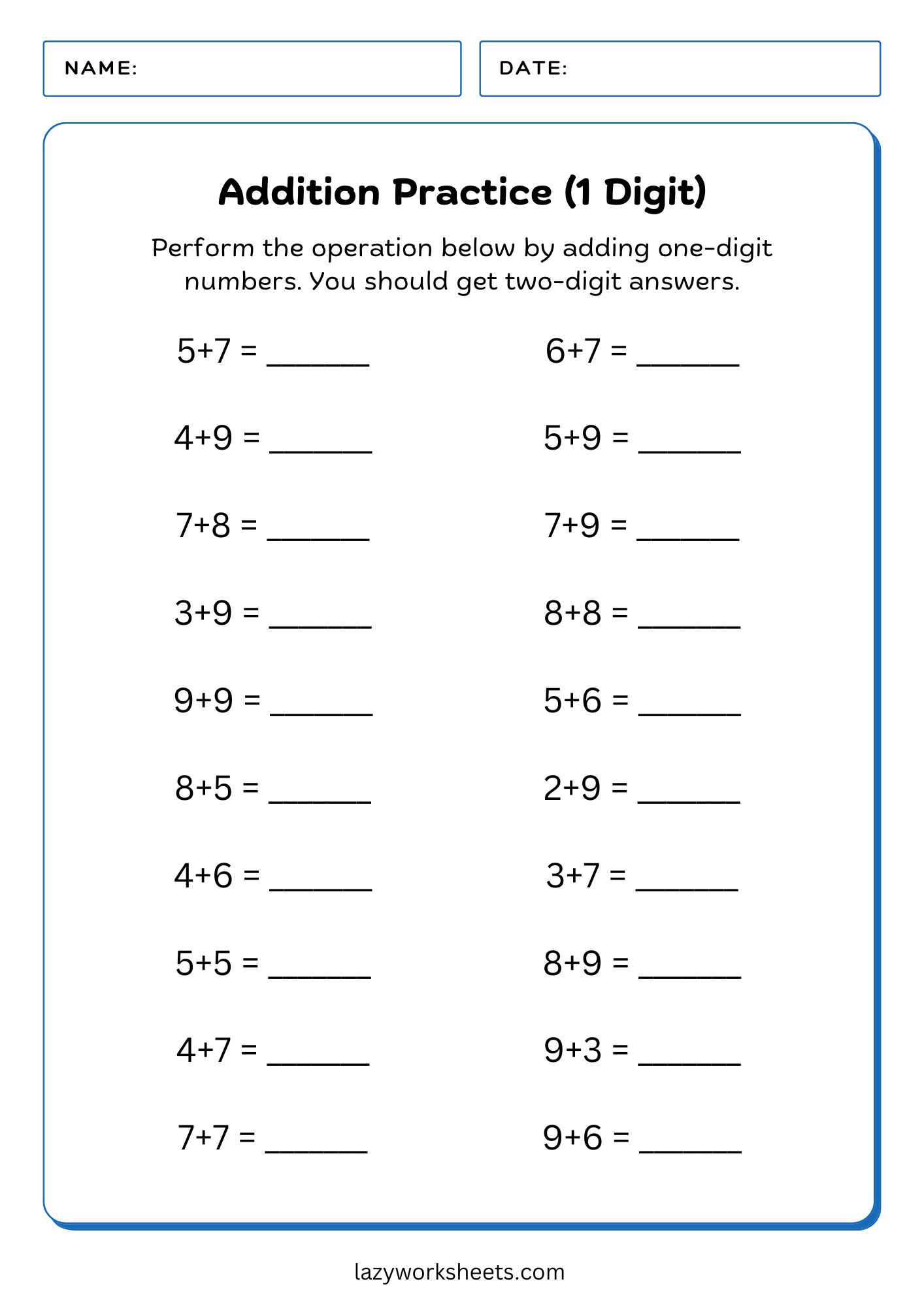 Encourage your little one to love and enjoy learning at a young age. At Lazy Worksheets, we have all the resources you need to help your child thrive in a competitive classroom setting. Download these free Simple Addition Practice Worksheets now and start teaching your little one about the fun and wonderful world of 1-2-3!